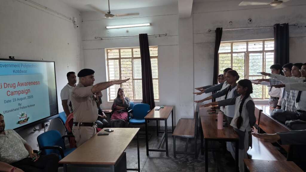 कोटद्वार। राजकीय पॉलिटेक्निक में नशा मुक्त भारत के तहत एंटी ड्रग कार्यशाला आयोजित की गई। कार्यशाला में छात्रों को मादक पदार्थ द्वारा होने वाले दुष्परिणामों के बारे में विस्तृत जानकारी देकर नशे से दूर रहने के लिए प्रेरित कर जागरूक किया गया।