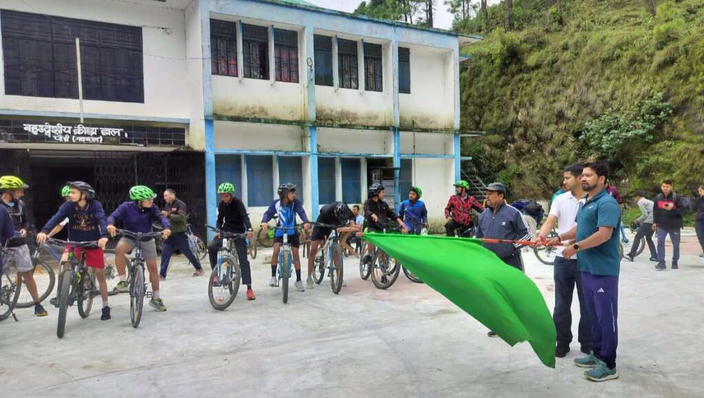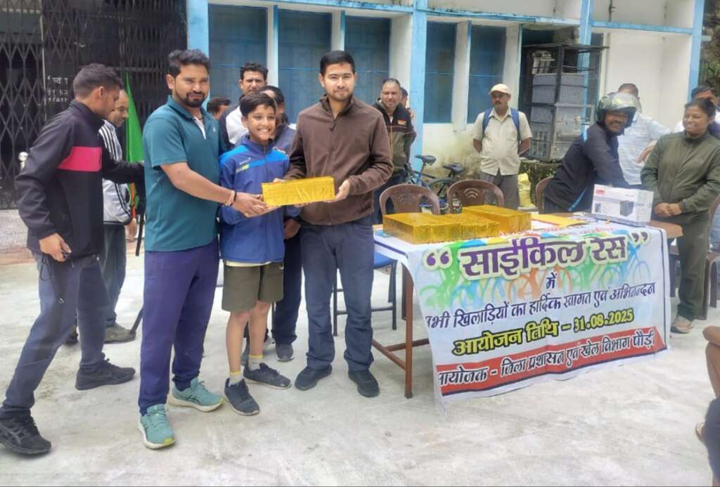 खेल दिवस: पौड़ी में इंडोर स्टेडियम से टेका मार्ग तक हुई साइकिल दौड़, प्रतिभागियों को किया गया पुरस्कृत