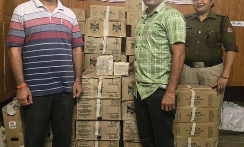 कार से भारी मात्रा में शराब बरामद, चालक की तलाश जारी