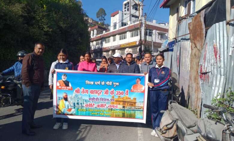 पौड़ी। गुरु तेगबहादुर जी के 350वें शहीदी दिवस को जनपदभर में धूमधाम से मनाया गया। इस अवसर पर समाज कल्याण व शिक्षा विभाग के तत्वावधान में समस्त नगरीय क्षेत्रों के शिक्षण संस्थानों के छात्रों द्वारा स्थानीय बाजारों और सार्वजनिक स्थलों पर प्रभात फेरी निकाली गयी।