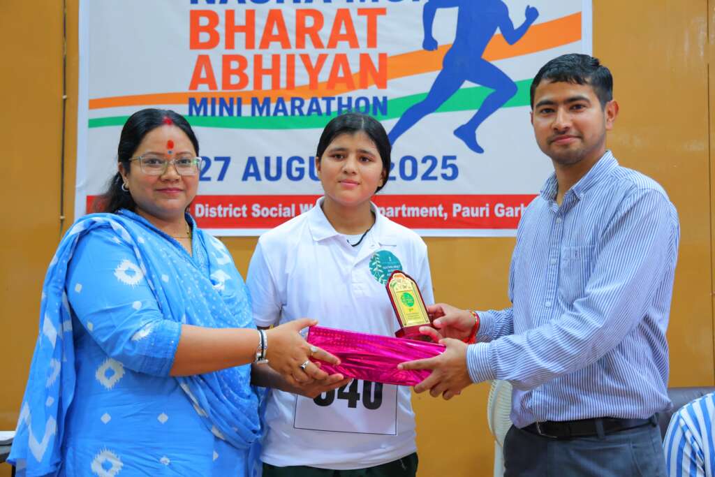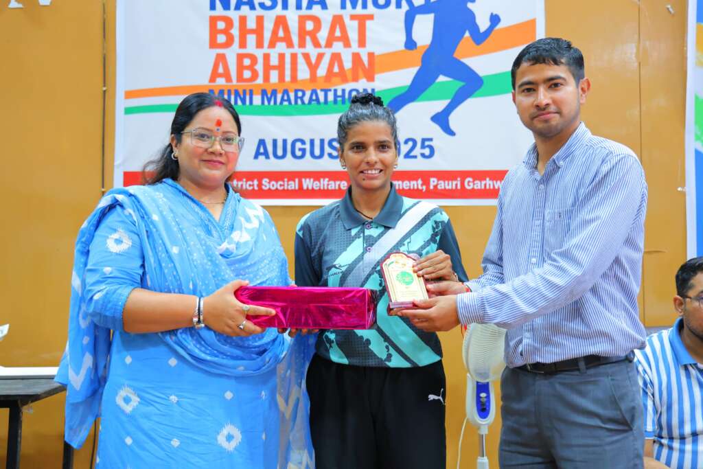 पौड़ी। समाज कल्याण विभाग और शारीरिक शिक्षा विभाग एचएनबी केंद्रीय गढ़वाल विश्व विद्यालय के संयुक्त तत्वावधान में श्रीनगर में नशा मुक्त भारत अभियान की 5वीं वर्षगांठ के उपलक्ष्य में क्रॉस कंट्री दौड़ का आयोजन किया गया। महिला व पुरुष ओपन तथा स्कूली वर्ग की इस प्रतियोगिता में क्षेत्र के 200 से अधिक धावकों ने प्रतिभाग किया। इसके पश्चात कार्यक्रम में उपस्थित लोगों को नशा मुक्ति की शपथ दिलाकर हस्ताक्षर अभियान भी चलाया गया।