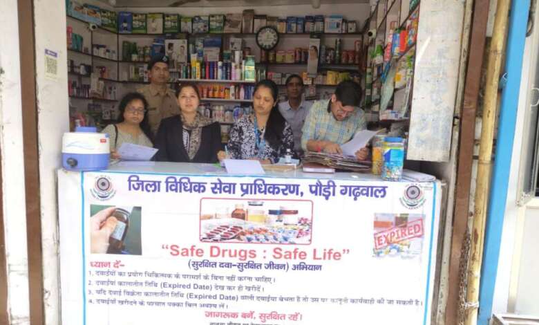 पौड़ी। सचिव जिला विधिक सेवा प्राधिकरण के नेतृत्व “सुरक्षित दवा सुरक्षित जीवन” एवं “जेनेरिक ड्रग्स –इफेक्टिव, इकोनॉमिकल एंड एसेंशियल” अभियान के अंतर्गत पौड़ी बाजार में औषधियों की दुकानों का औचक निरीक्षण किया गया।